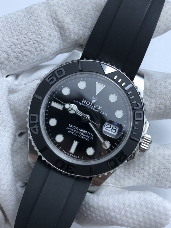 (준비완료/특급배송/예상수령7일)NO.144/ 클린공장롤렉스 요트마스터 42 스틸 블랙다이얼 러버스트랩 클린